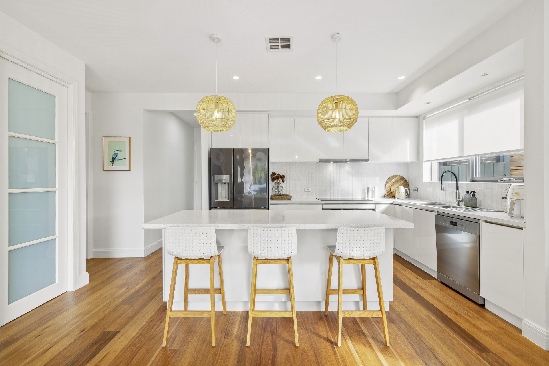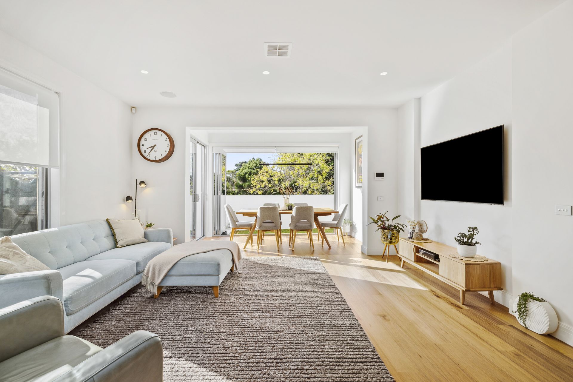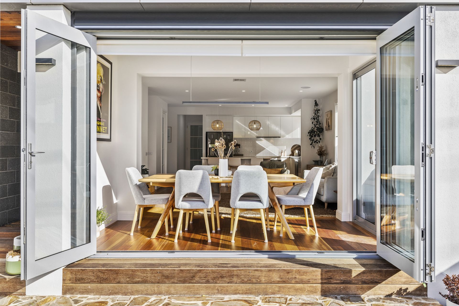 The heart of the home is the stunning kitchen, complete with stone benchtops and a state-of-the-art induction cooktop. The open-plan dining area flows effortlessly through concertina doors to a beautiful private courtyard, creating the perfect space for entertaining or quiet relaxation.