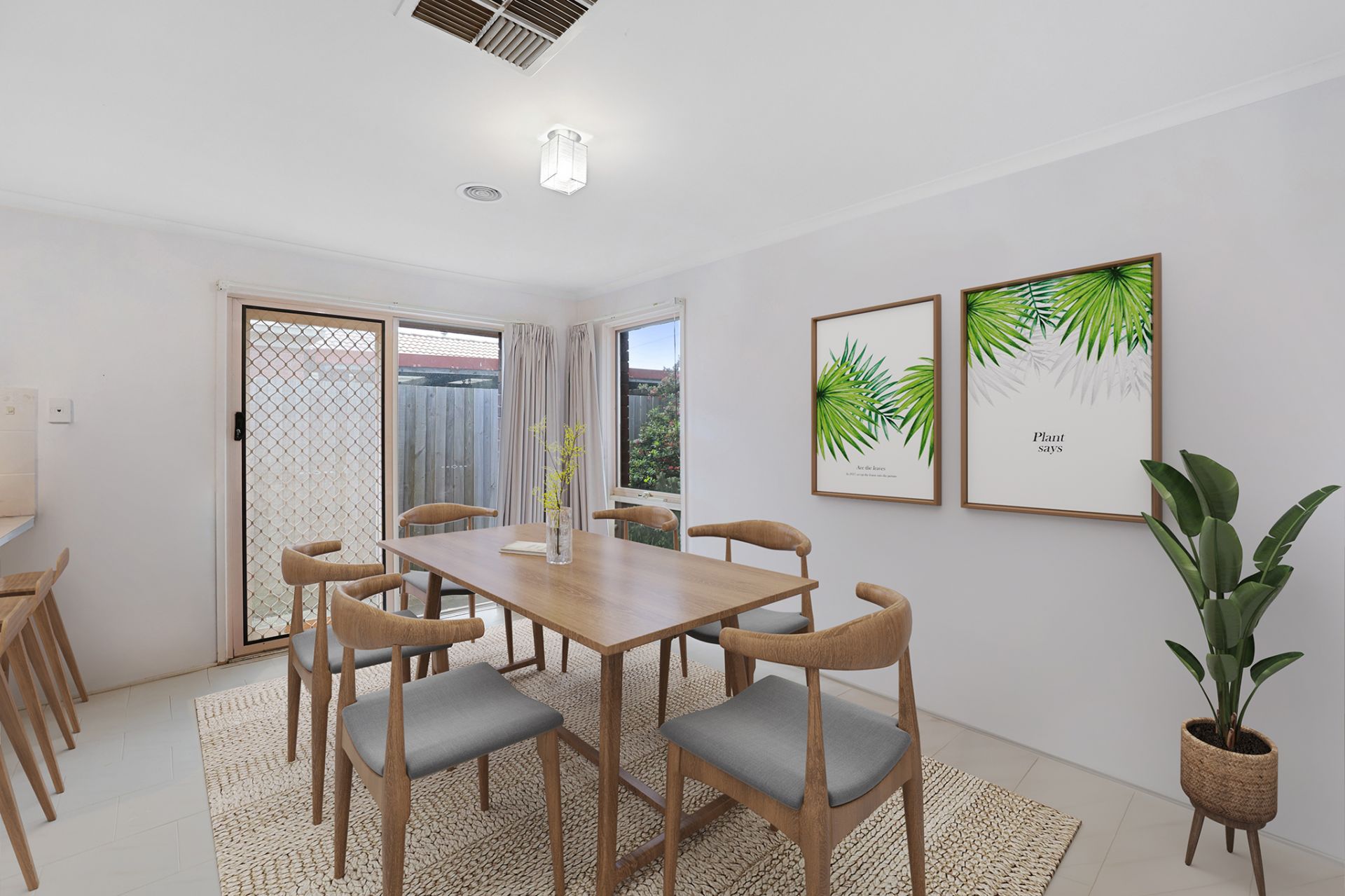 A large living area is complemented by a dining area and well-thought-out u-shaped kitchen.